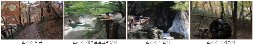 2023년 산림청에서 선정한 100대 명품숲으로도 인증받은 이곳은 농산정과 낙화담 폭포 같은 아름다운 경관을 자랑합니다. 무장애 탐방로로 조성된 4구간은 거동이 불편한 탐방객들도 이용할 수 있어 모두가 함께 자연을 즐길 수 있는 친화적인 공간입니다. 소리길을 따라 걷다 보면 가을의 서정적인 분위기를 온몸으로 느낄 수 있습니다.