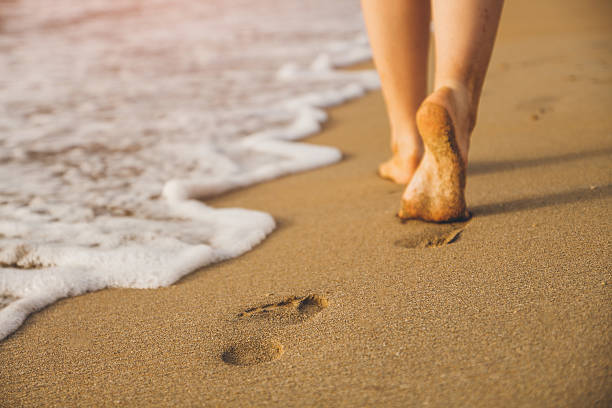 해변은 흙길에 비해 걷기가 어렵지만 운동효과가 크고 모래 알갱이가 발바닥과 발가락 사이를 오가기 때문에 자극이 좋습니다.